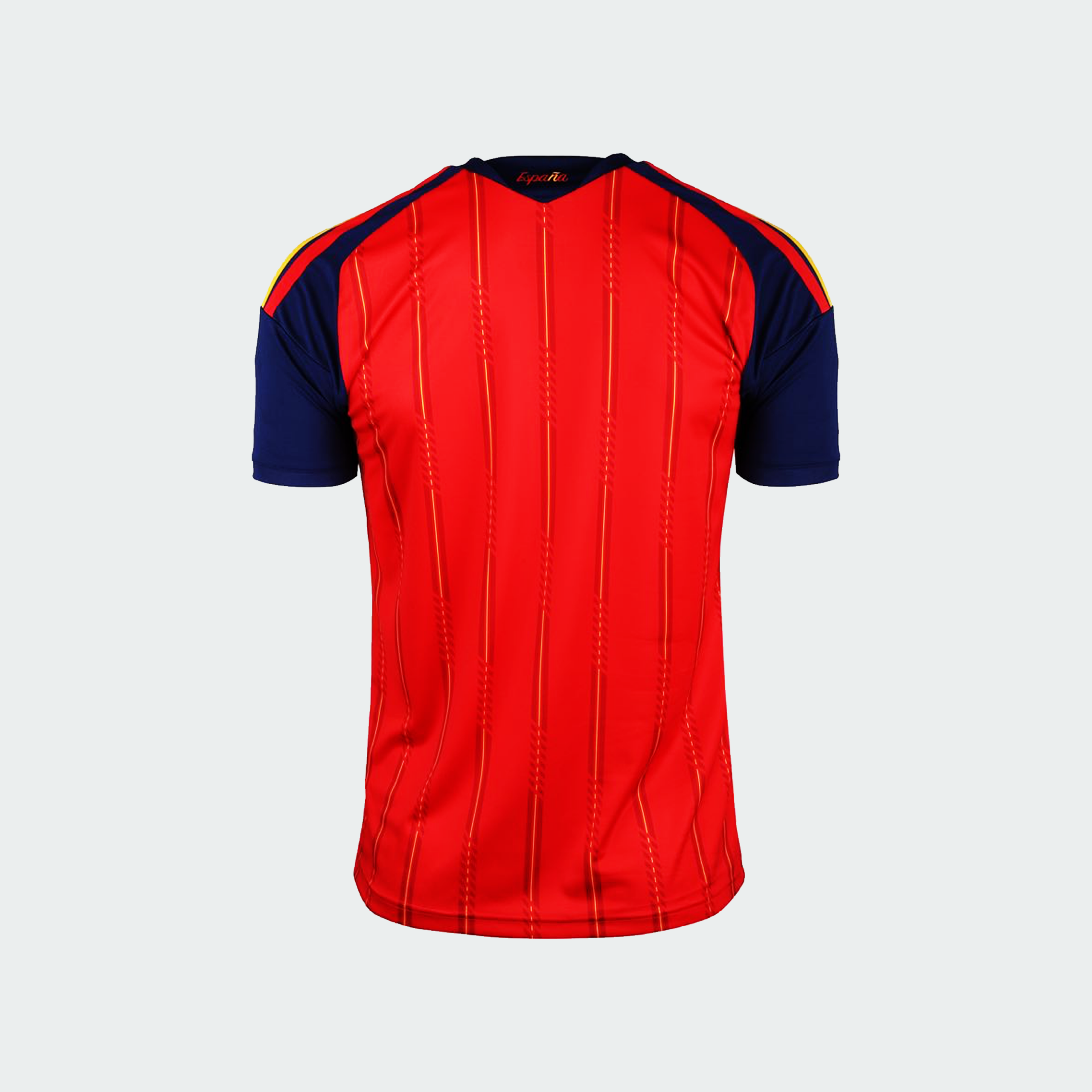 El corazón de una nación. España vestirá en el Mundial 2026 un rojo profundo con detalles en amarillo “gualda”. La tela incorpora una textura de ondas inspirada en la flor nacional y los mares que rodean la península. Corte ajustado Slim Fit típico para atletas de alto rendimiento.